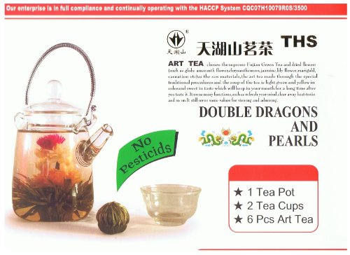 B004DWZIM6Double Dragons and Pearls Art Flowering Tea Gift Set - 1 Tea Pot, 2 Tea Cup & 6 Art Tea Overview