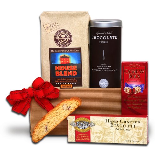 Gift Basket with Coffee Bean and Tea Leaf Coffee and Chocolate powder.Alder Creek Gifts Father's Day Coffee Bean and Tea Leaf Sampler Gift Basket Feature