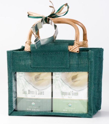 Davidson’s green teas comes in jute gift bags present 6 boxes of organic, all tied up with natural raffia and a teapot cookie cutter. Cut-out cookie recipe included. Teas and herbs are certainly no different, so over the years we’ve tirelessly searched the world for only the best tasting available. Then here at our facility, in sparks, Nevada, high in the sierra mountains, we handle and blend these fine ingredients for the most appealing flavor, aroma and appearance. But over the years our definition of quality has changed a bit also. Knowing that people drink tea both for enjoyment and the multitude of health benefits they’ve heard about, we began, over a period of years, to convert our entire product line to USDA certified organic. Now each single loose leaf tea and each tea bag we produce over 400, in all, bear the important usda organic icon, symbolizing the purity we feel our customers deserve.Davidson's Tea Jute Gift Bag Filled with Six Boxes of Assorted Green Teas (Pack of 2) Feature