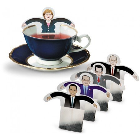 - 5 tea bags: one each of "Barack, Angela, Nicolas, Silvio, Vladimir"